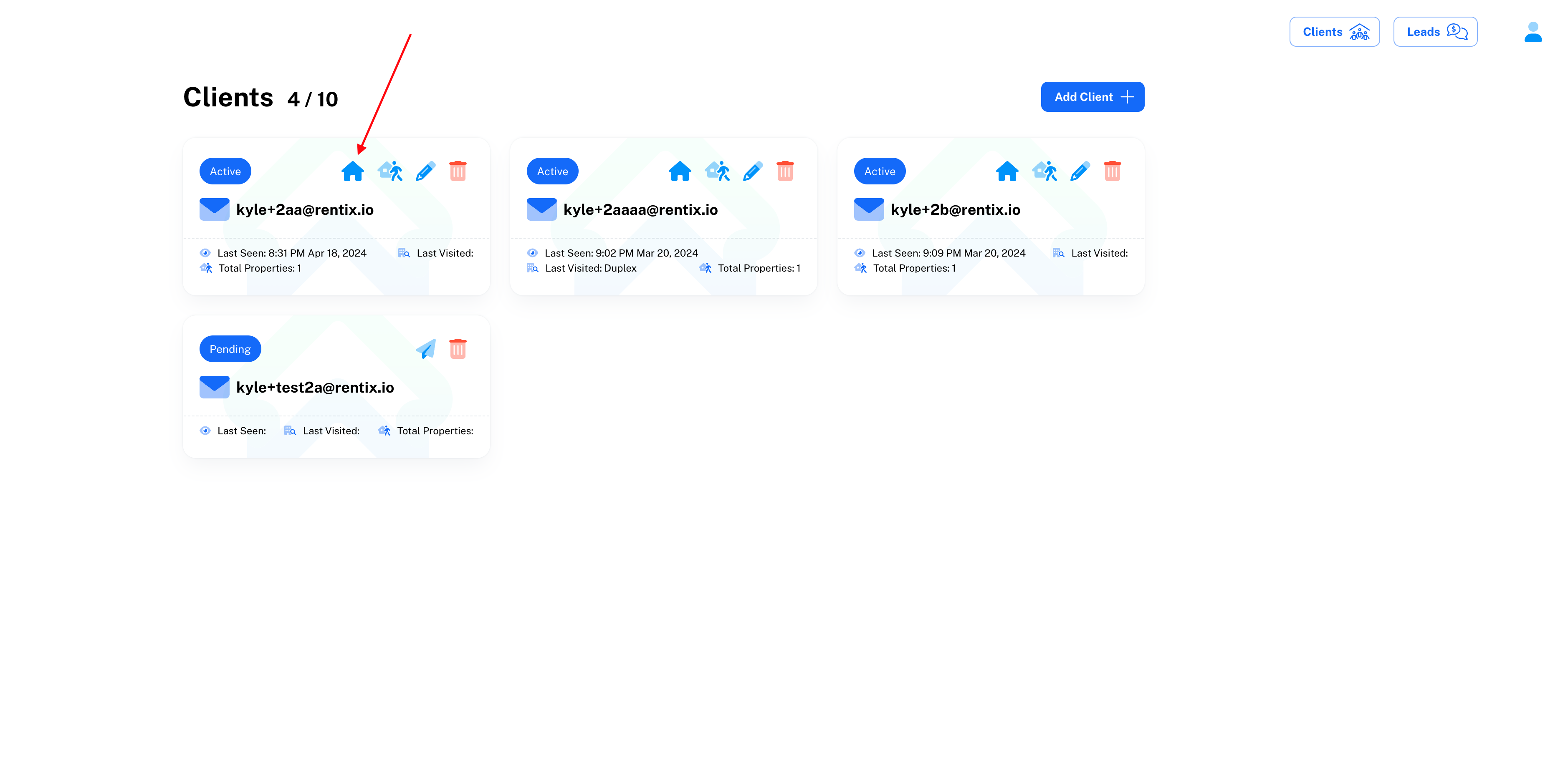 First, navigate to the client dashboard https://app.rentix.io/dashboard/clients